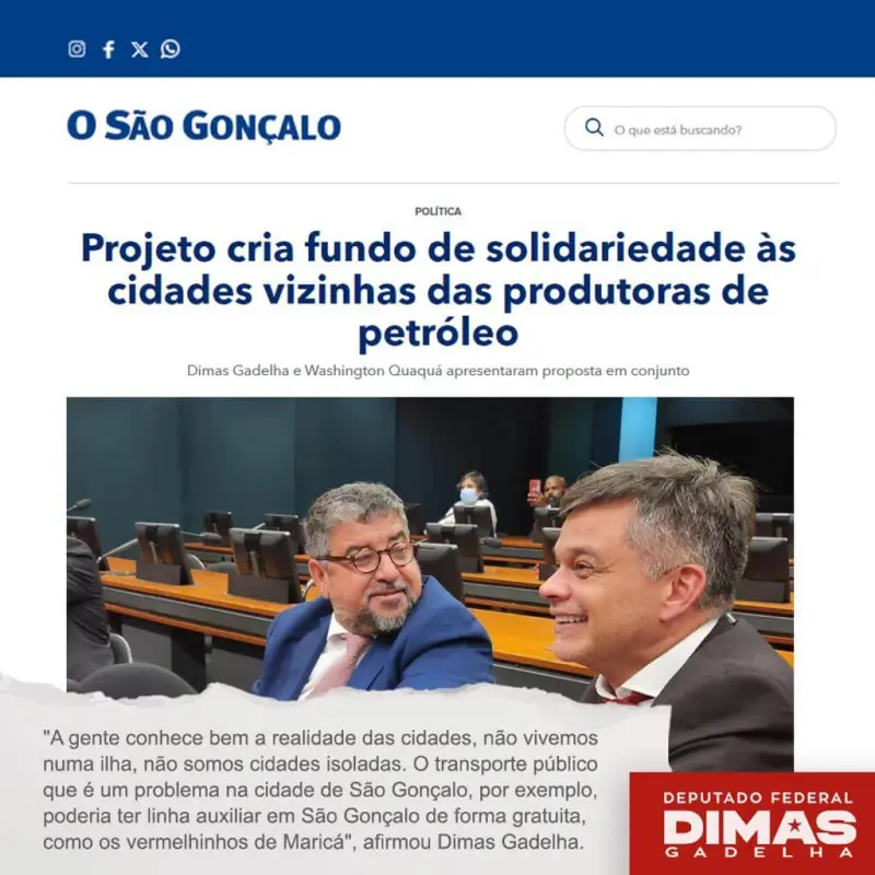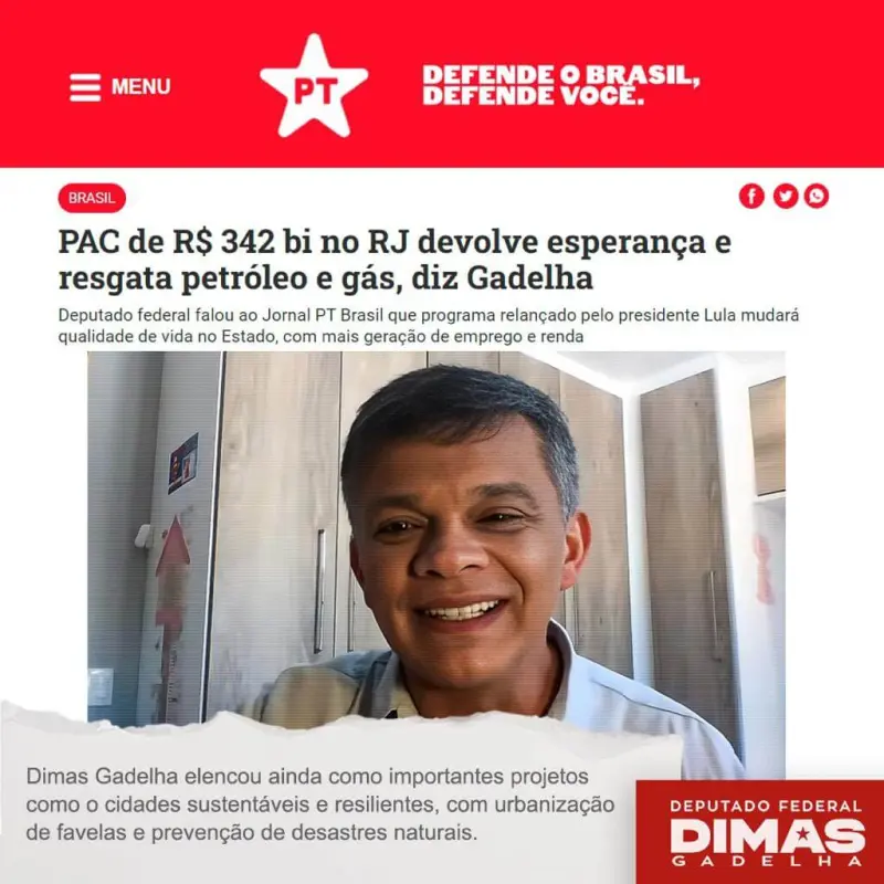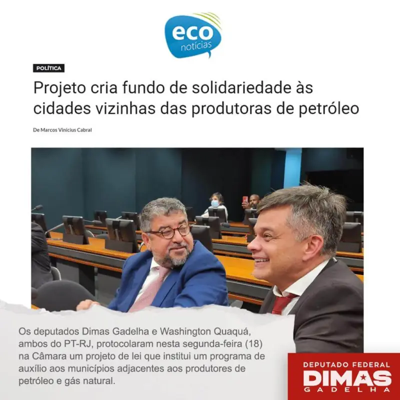 Dimas de Paiva Gadelha Junior, médico sanitarista, filiado ao Partido dos Trabalhadores, atualmente é deputado federal pelo Rio de Janeiro, tendo antes ocupado as secretarias de Saúde no município de São Gonçalo e de Políticas Sociais, Estratégicas e Gestão de Metas em Maricá.